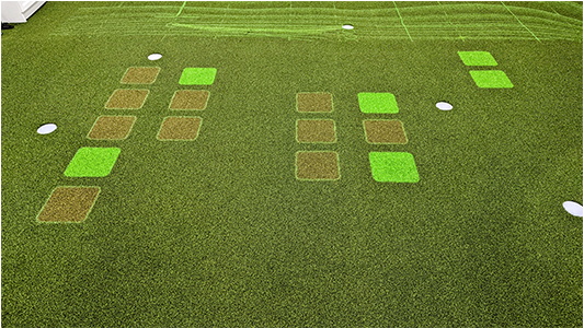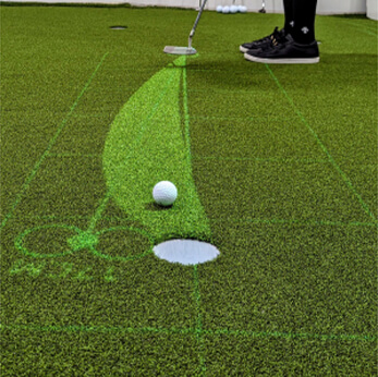 「TOURPUTT(ツアーパット)」を導入。傾斜のあるグリーンを3次元でスキャンし、プロジェクションマッピングでラインをグリーンに投影・視覚化します。まずは自分のライン分析から始めます。