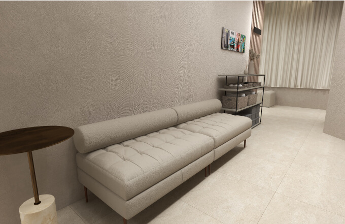 レストスペース 上質なソファ家具を設置。ゆったりとお待ちいただき、