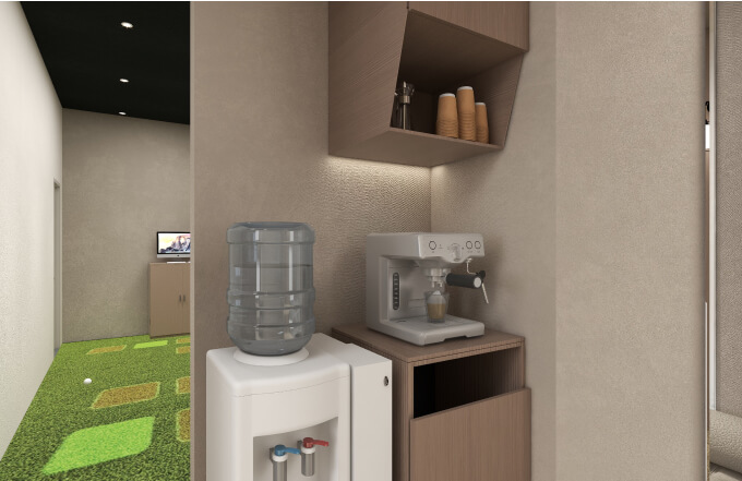 フリードリンク 水素水が飲めるウォーターサーバーやコーヒーメーカーを完備。練習の合間やレッスン後にご利用ください。